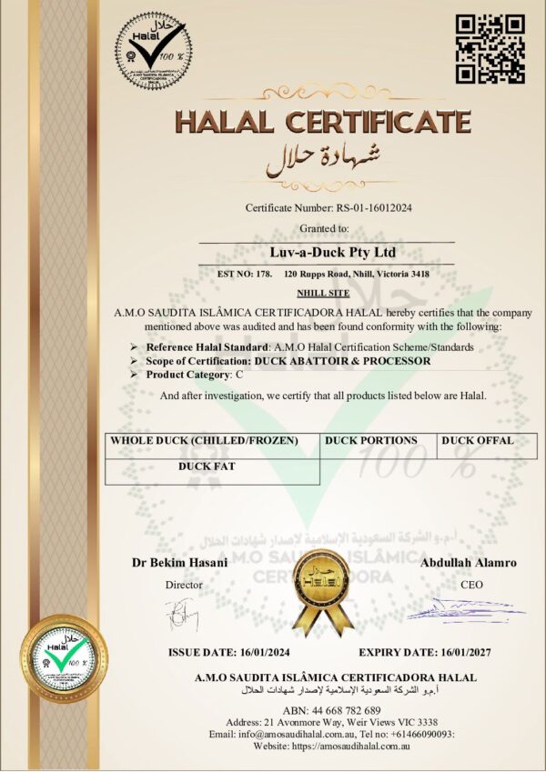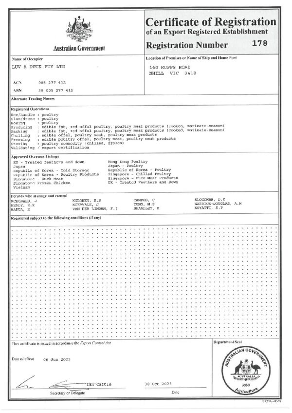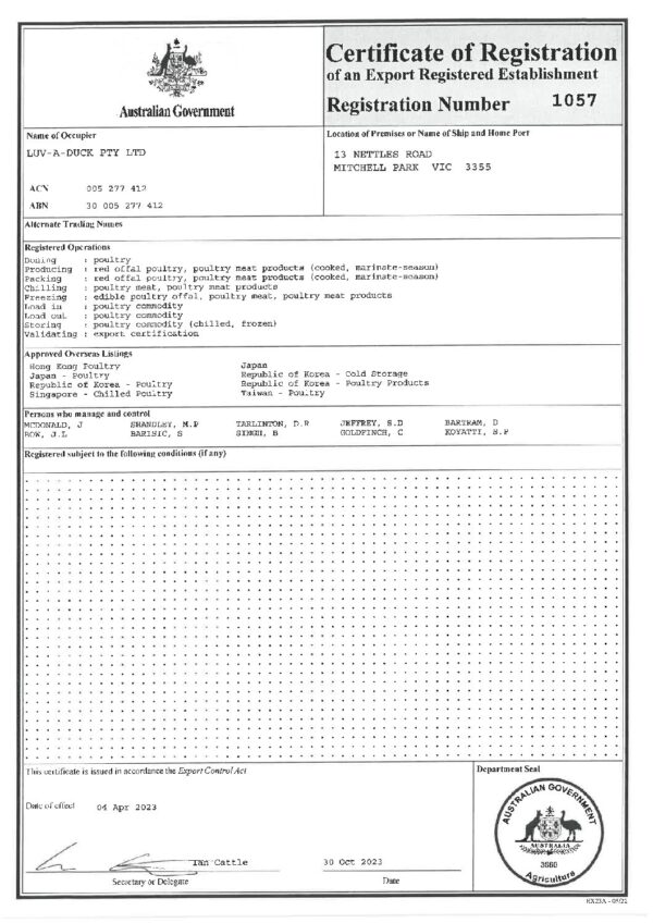 Luv-a-Duck is a family-owned company established in 1968. It is a fully vertically integrated business that includes Duck breeding, the Hatchery, Duck farms and multiple process sites in country Victoria (Nhill and Ballarat) with the Head office located in Port Melbourne.