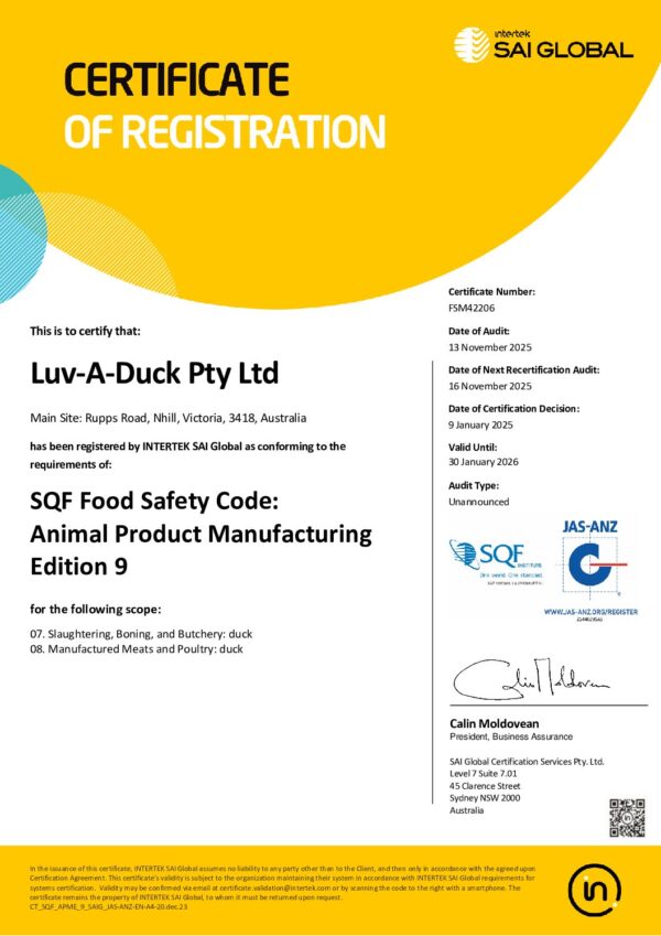 Luv-a-Duck is Australia’s leading producer of Duck providing the highest quality duck to Distributors, Retailers, Caterers and Restaurants around the world.