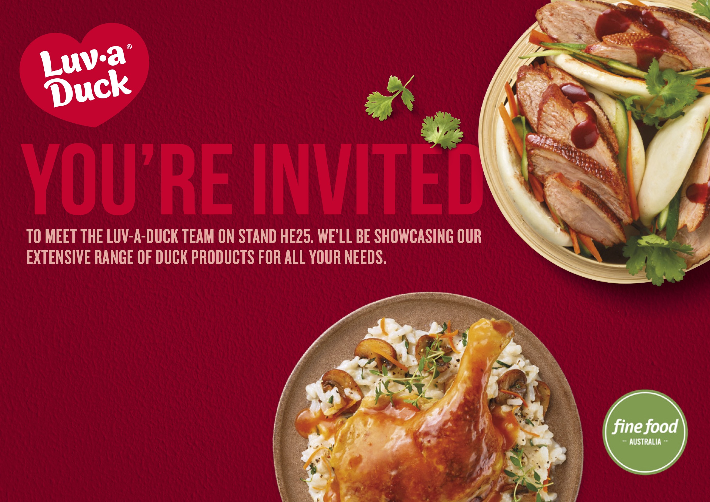 Luv-a-Duck are thrilled to be exhibiting at Fine Food Australia from September 2 – 5 at the Melbourne Convention and Exhibition Centre.